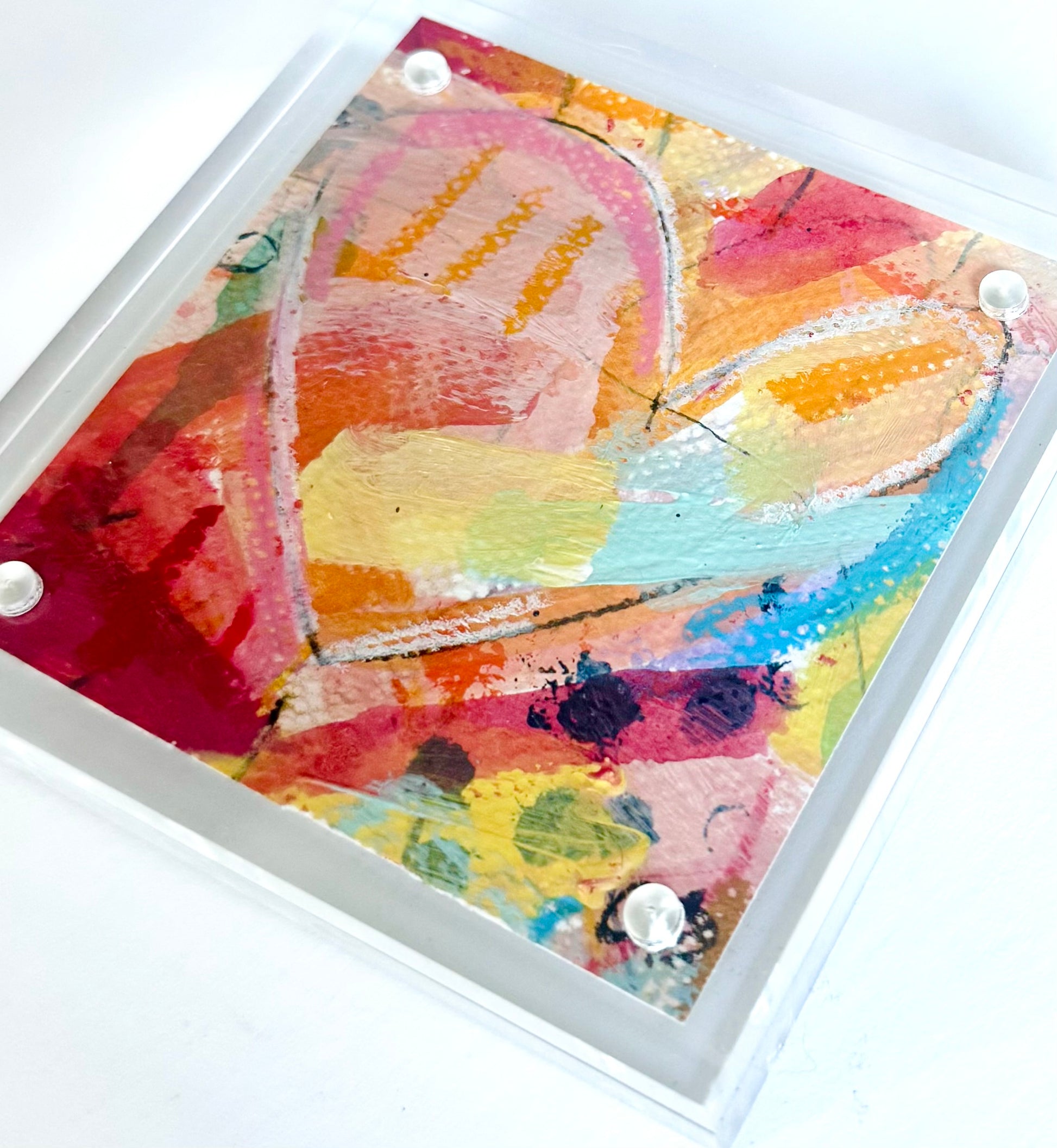 The Loud Love series was created for spaces—and people—that need a little more energy. Each 4x4 acrylic block features an original, one-of-a-kind heart painting layered with bold color and movement, designed to instantly brighten a shelf, desk, nightstand, or entry moment.