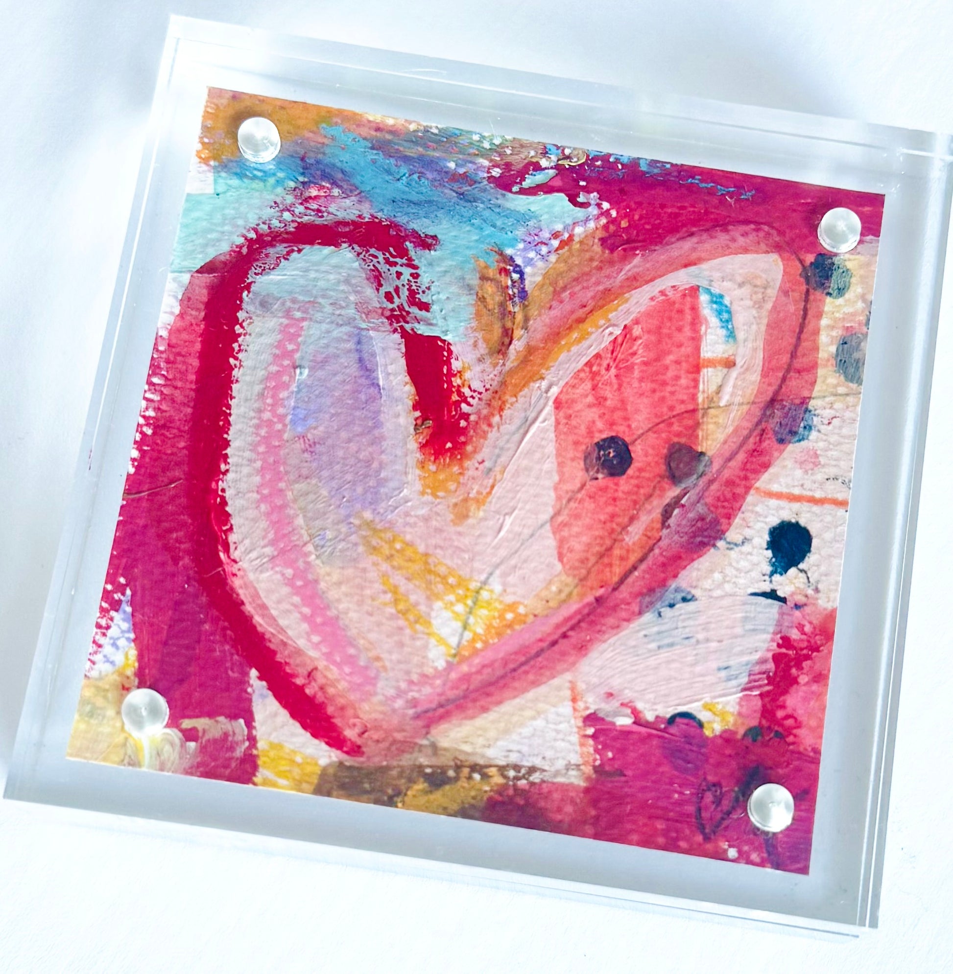 The Loud Love series was created for spaces—and people—that need a little more energy. Each 4x4 acrylic block features an original, one-of-a-kind heart painting layered with bold color and movement, designed to instantly brighten a shelf, desk, nightstand, or entry moment.