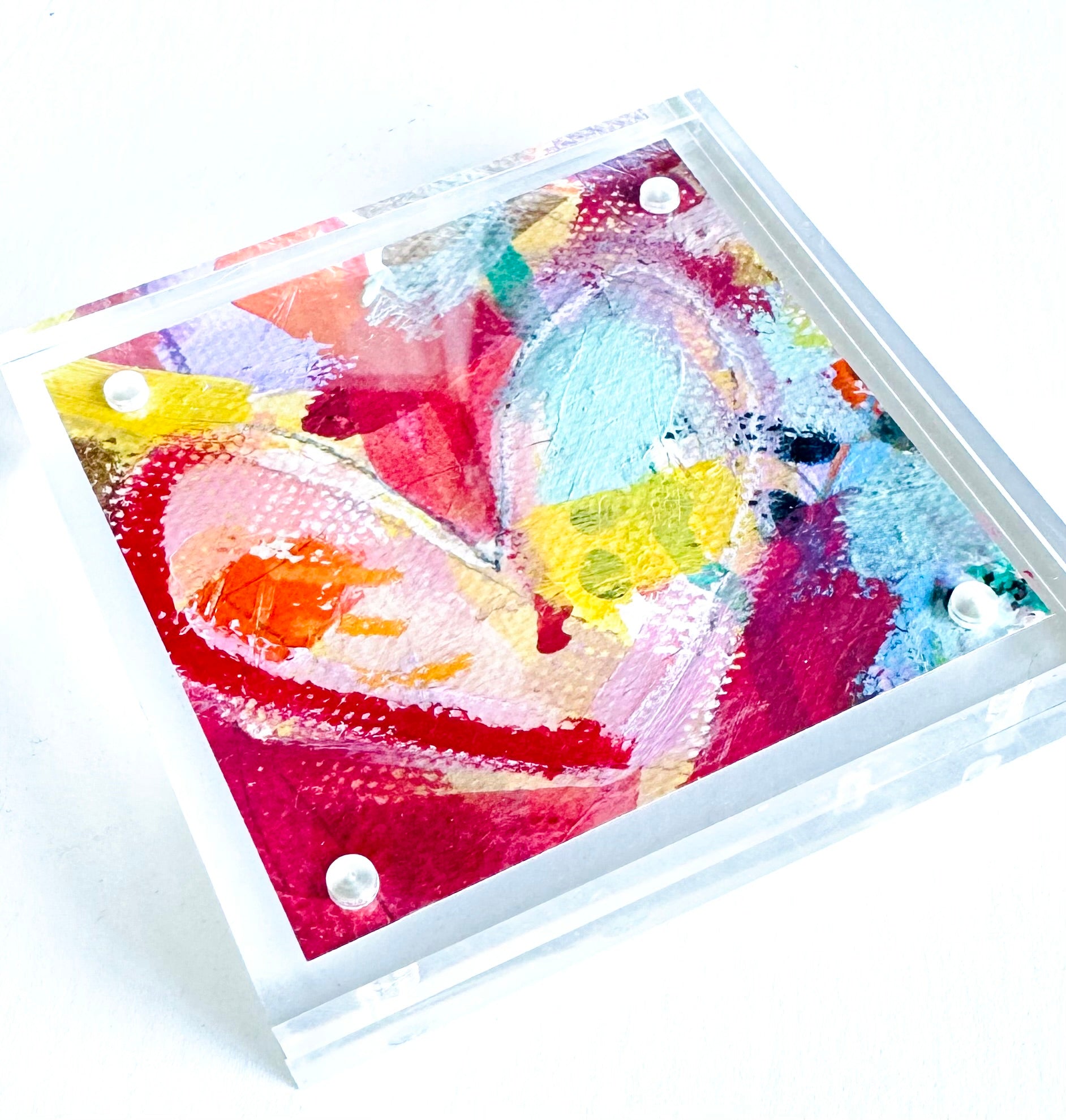 The Loud Love series was created for spaces—and people—that need a little more energy. Each 4x4 acrylic block features an original, one-of-a-kind heart painting layered with bold color and movement, designed to instantly brighten a shelf, desk, nightstand, or entry moment.