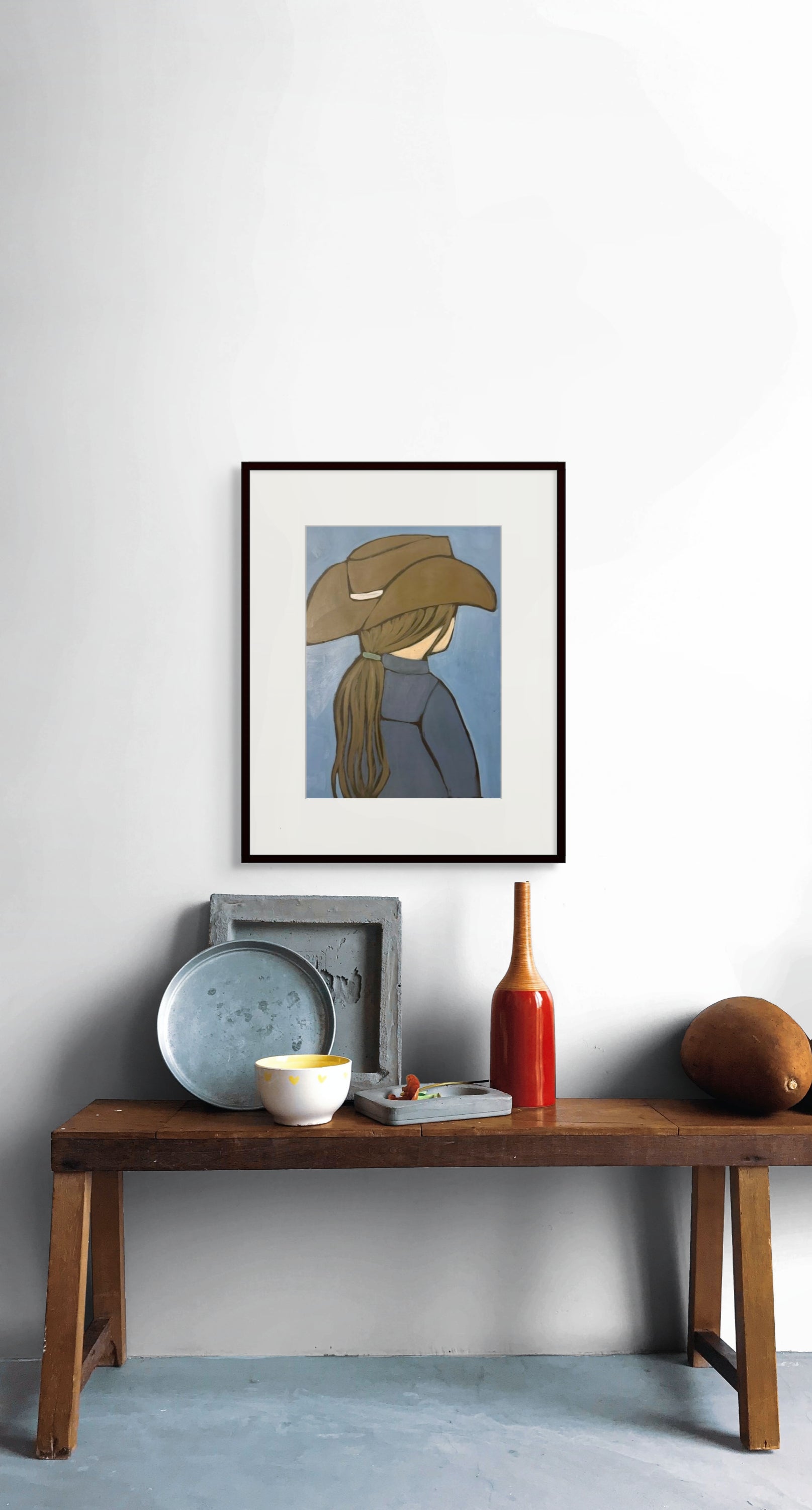 Painted from behind, this cowgirl carries a quiet confidence that doesn’t need to explain itself. Loose brushwork and grounded tones give her a sense of calm authority—measured, intuitive, and unbothered. This piece is about restraint, discernment, and the power of keeping certain thoughts to yourself.