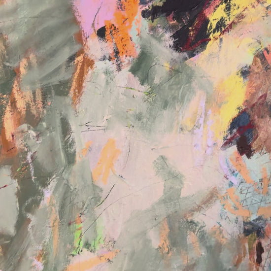 This original abstract painting, titled "Last Night I Had A Dream", is a captivating mixed-media piece that invites you to lose yourself in its intricate layers. Measuring 36x36 inches, the artwork begins with a foundation of deep, midnight blue, creating a sense of mysterious depth. Dancing colors and energetic lines emerge from these layers, weaving a vibrant narrative. The surface is brought to a stunning conclusion with light, airy sky blue, gentle seafoam green, and soft butter yellow, which float above the darker tones, giving the impression of a dreamlike, ethereal landscape. The use of acrylic paint, oil pastels, and graphite provides rich texture and depth, making this a truly unique piece for any collection.