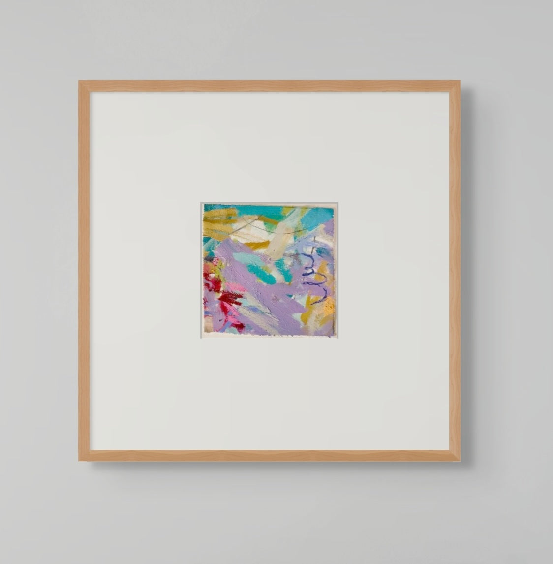 Acrylic, oil pastel, and graphite on paper — matted, framed, 15"x15", and ready to bring a touch of whimsy to your wall.